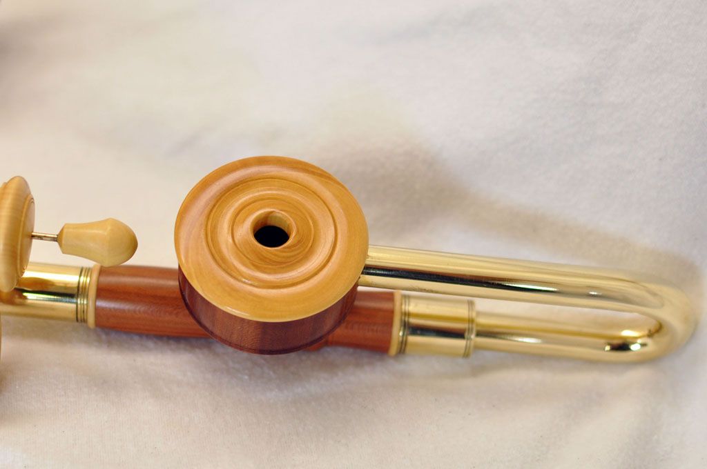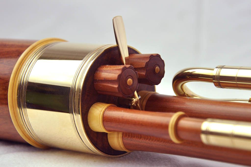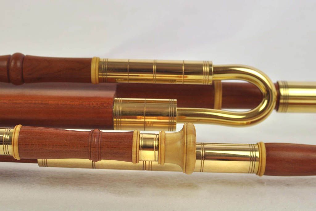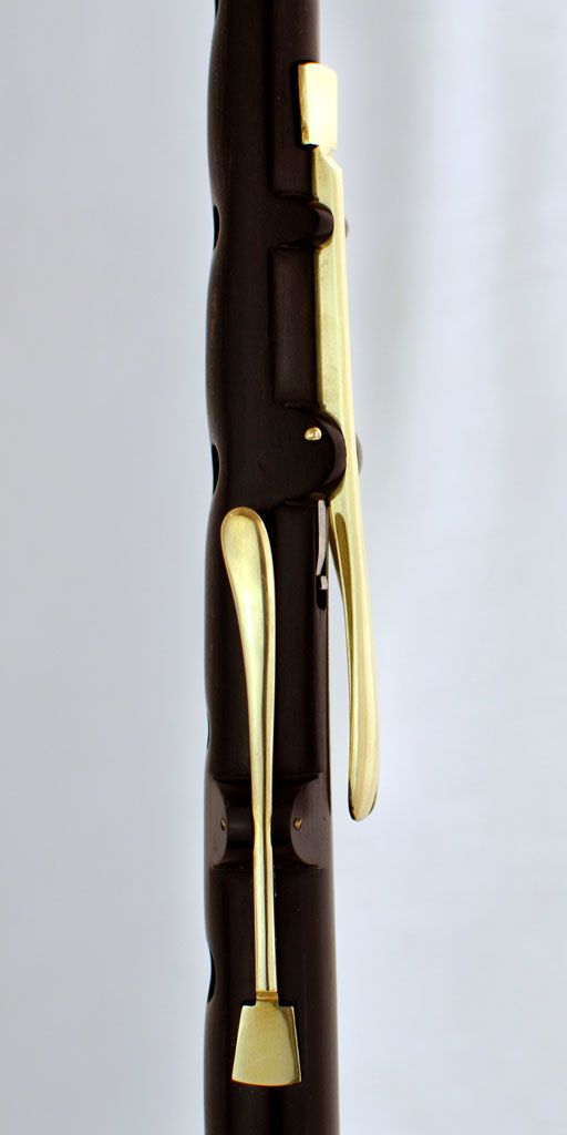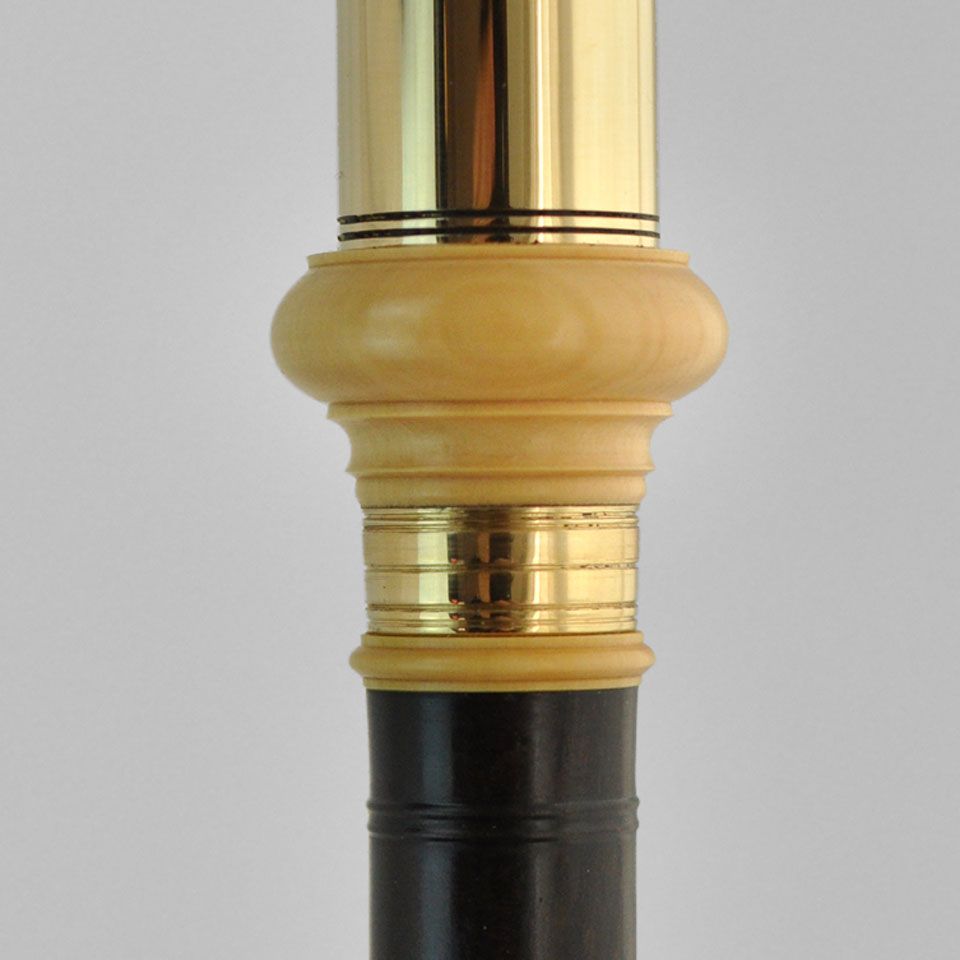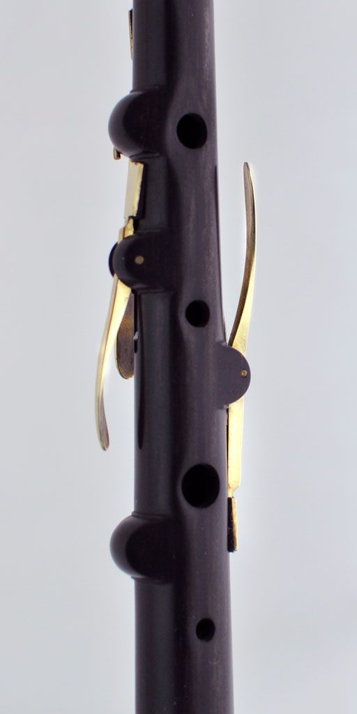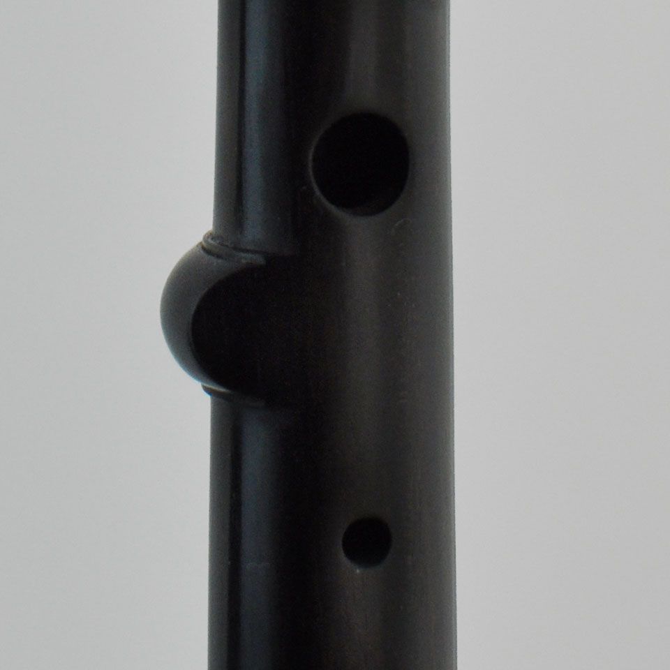 Durch vier Klappen (f,gis,b,c) ist der Chanter über zwei Oktaven voll chromatisch spielbar. Durch mein modernes System mit der b-Klappe in Mittelposition, lassen sich gis-,b- und c-Klappe bequem mit dem Daumen spielen. Dünne Stahlfedern sorgen für einen dauerhaft leichten Lauf.