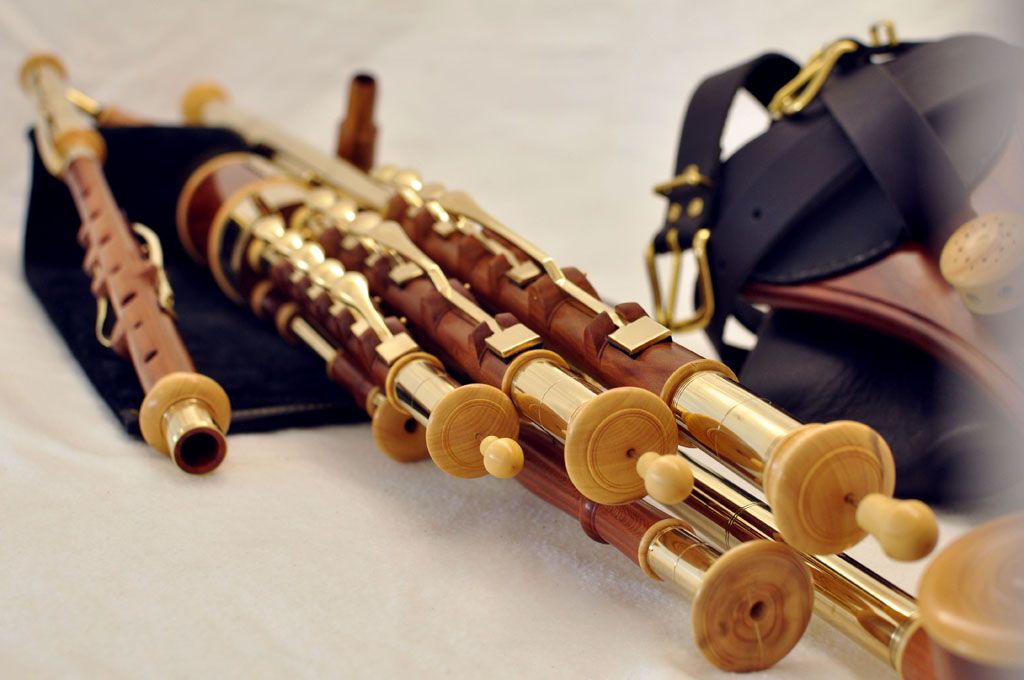 Das Half-Set besteht aus den drei Drones, die gut abgestimmt im Klangvolumen einen drei Oktaven umfassenden Ton ergeben, und dem Chanter (Melodiepfeife) der Rein gestimmt völlig schwebungsfrei über dem Grundton spielt.