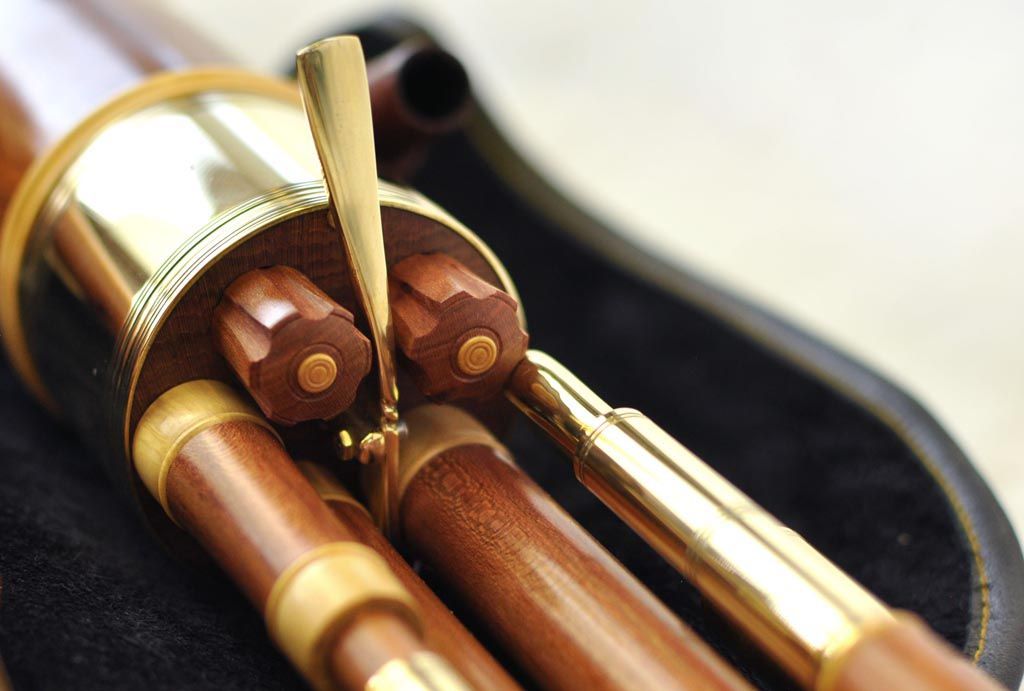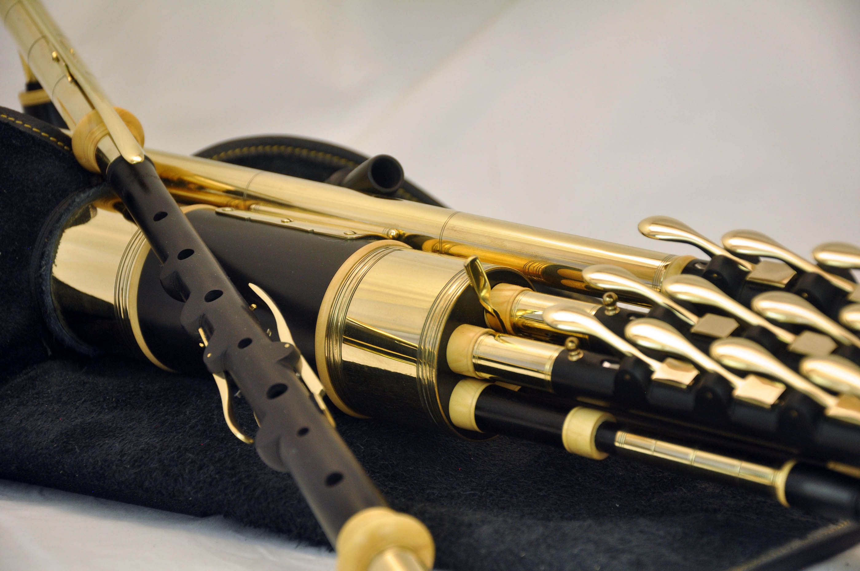 Nach meinen Vermessungen im September 2019 am William's Set habe ich mich einer weiteren intensiven Entwicklungsarbeit gewidmet. Ergebnis ist ein hervorragend abgestimmtes Full-Set. Das neue Klappensystem der Regulators vereint ein traditionelles Design mit modernen Ansprüchen an Haptik, Klang und Stabilität. Gut abgestimmte Volumen der Bohrungen und Soundboxen lassen die Drones warm, bassig und dennoch "reedy" klingen. In dieses Soundbett legt sich der obertonreiche Chanter und macht den Klang ganzheitlich.