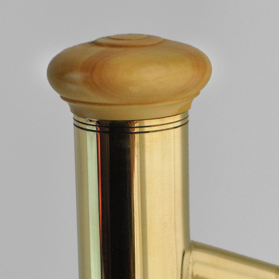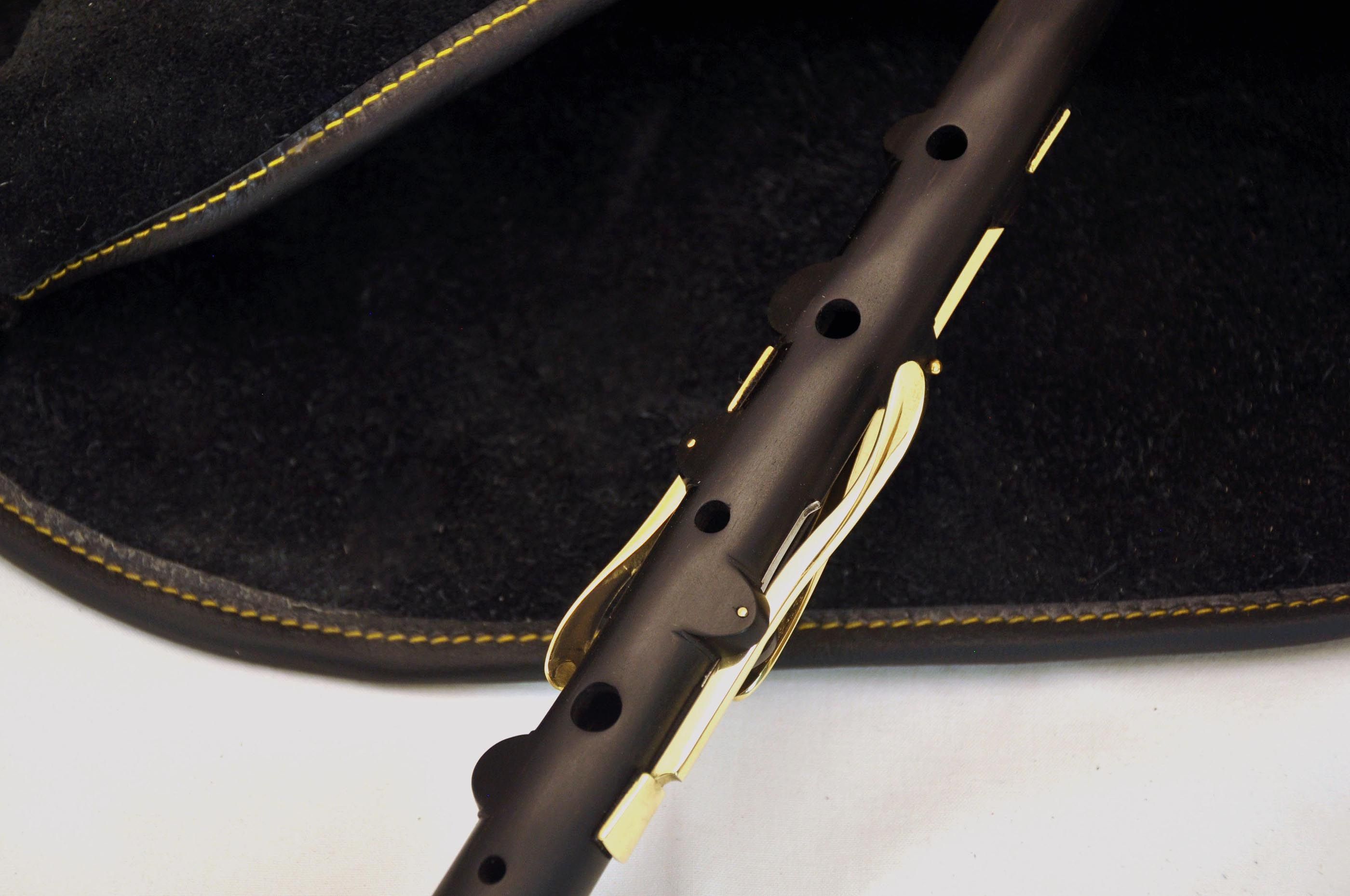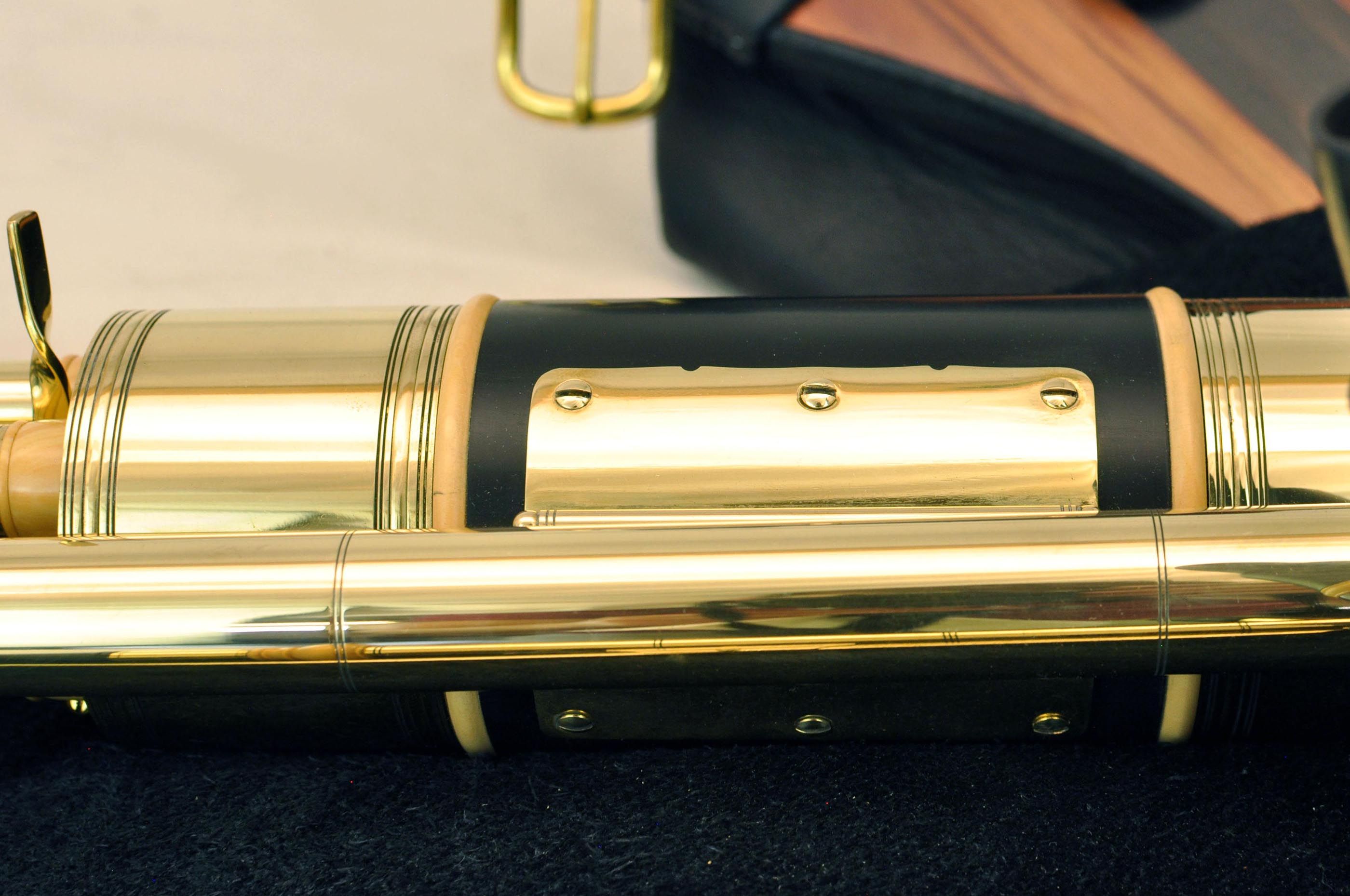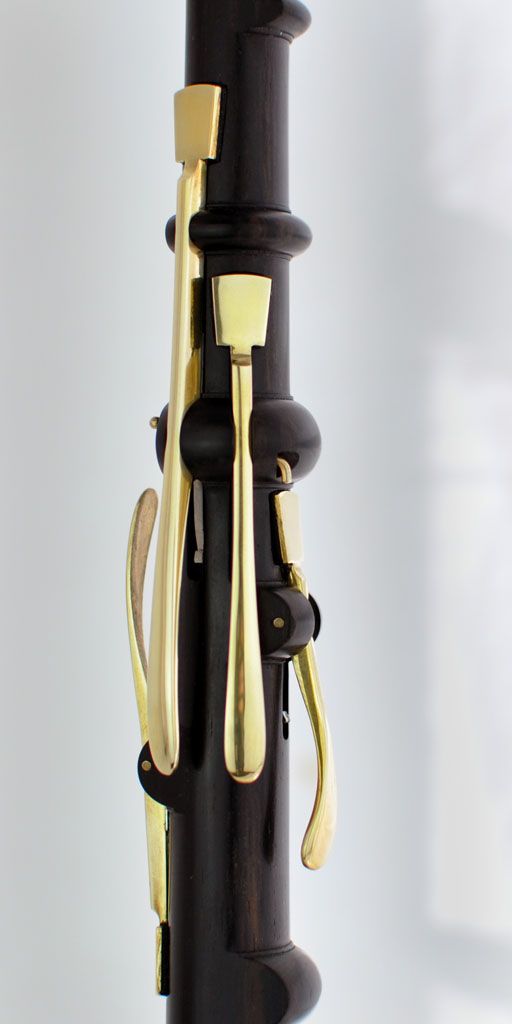 Durch vier Klappen (f,gis,b,c) ist der Chanter über zwei Oktaven voll chromatisch spielbar. Durch mein modernes System mit der b-Klappe in Mittelposition, lassen sich gis-,b- und c-Klappe bequem mit dem Daumen spielen. Dünne Stahlfedern sorgen für einen dauerhaft leichten Lauf.